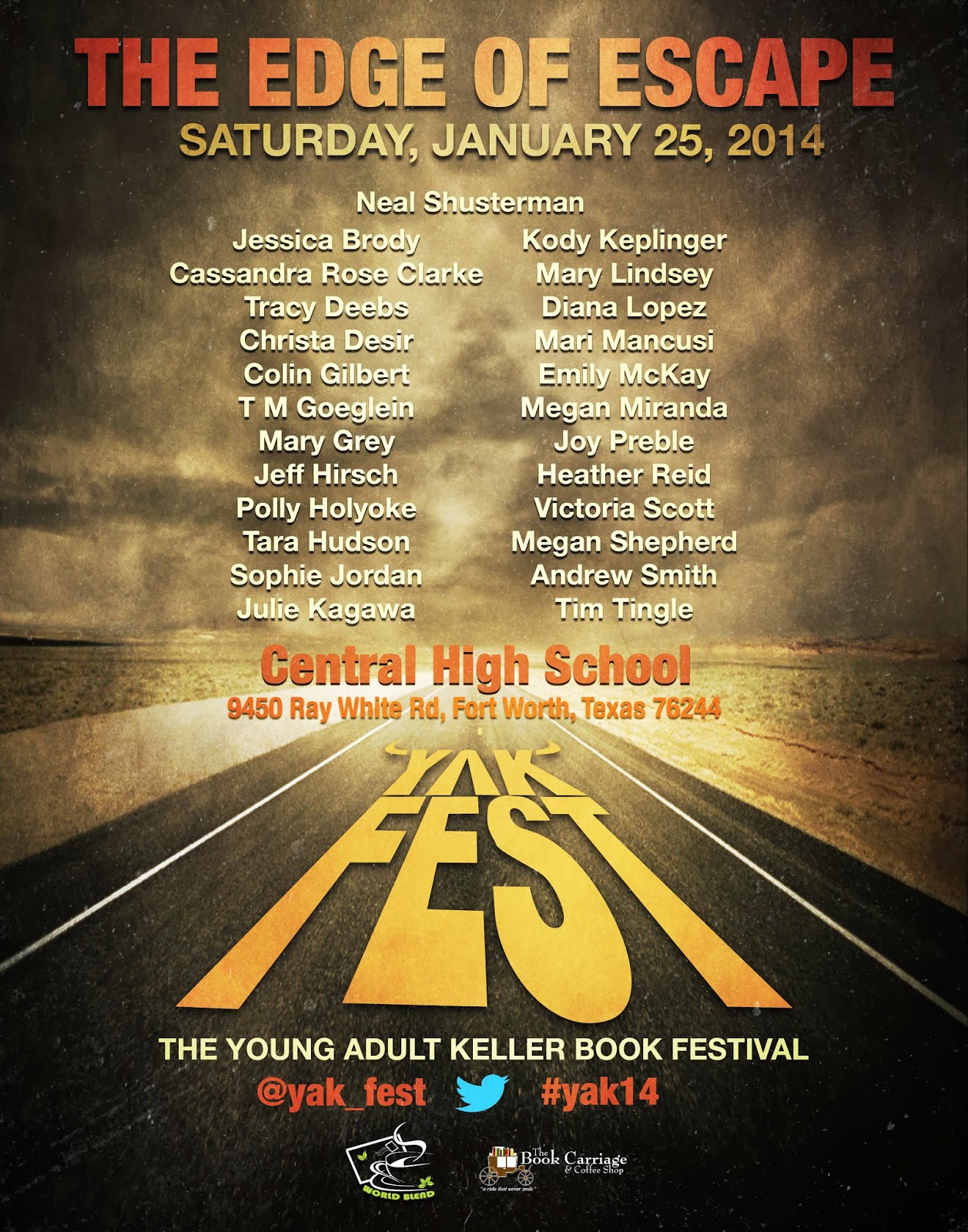 4. Kick-butt time last weekend at YAK FEST in Keller, Tx, which is west of Ft. Worth. Great panel mates: Heather Reid, Tara Hudson, Mary Lindsey, Victoria Scott, and panel moderator Lindsey Cummings. Awesome fans and librarians! Amazing organizers! And I got to meet and hang out with some authors I have fan-girled for a while now, including WINGER author Andrew Smith and the fabulous maker of dragons, Julie Kagawa and of course our keynote Neal Schusterman (I have never gotten over that unwind scene in UNWIND, Neal! Never!) And of course my other Texas author buddies including the delightful Sophie Jordan (her launch of UNINVITED was last night at Murder by the Book and it was packed!) and Mari Mancusi and many, many more.